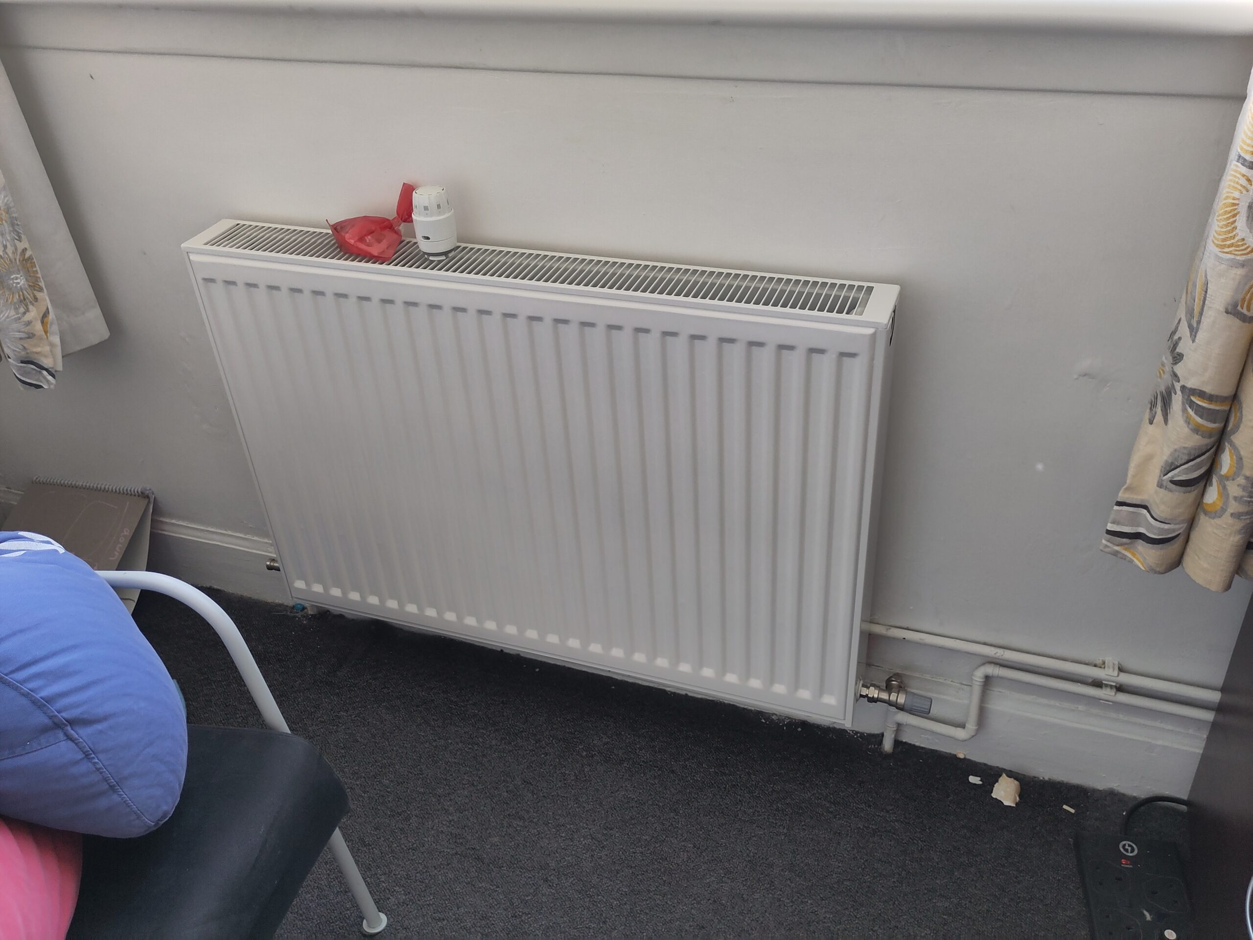 Day 5 was finishing up the install, flushing the system and re-filling it, putting the thermostats in place, and completing the insulation of the pipes. As they were doing that they spotted a minor leak on the small ball valves to one of the radiators that wasn’t changed, so replaced those with straight pipe. My kids spotted that the smaller kids bedroom had a bigger radiator and found it strange, however this is expected due to the extra external wall, thus greater heat loss in the smaller room.