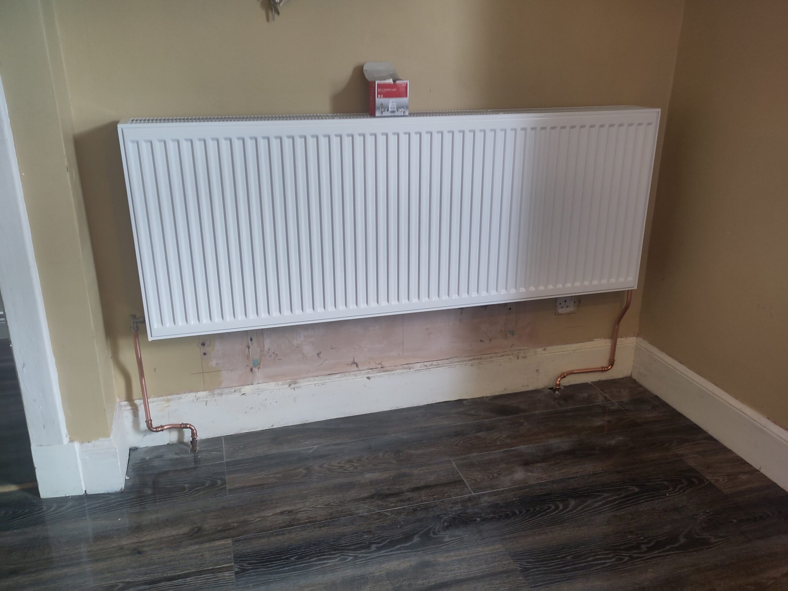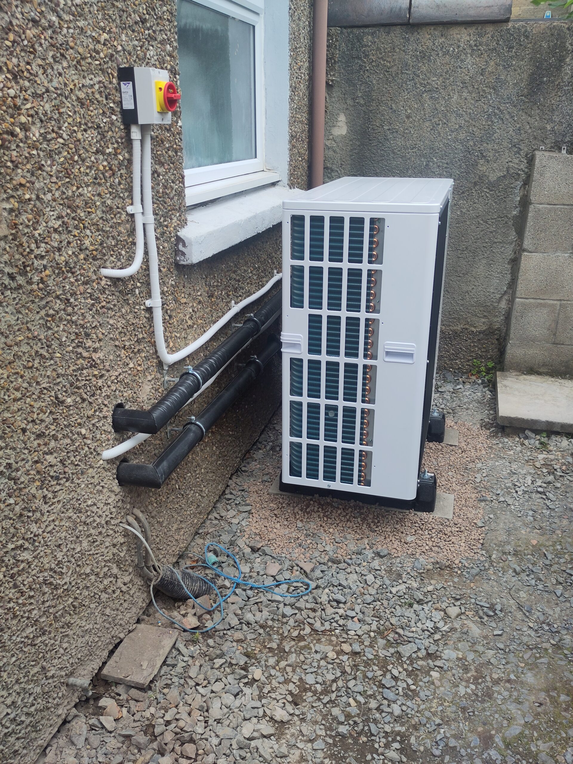 Day 2 was implementing the pipework changes and hanging some of the radiators that were changing. The external pipes and electrical cables were put in place, but not connected up.