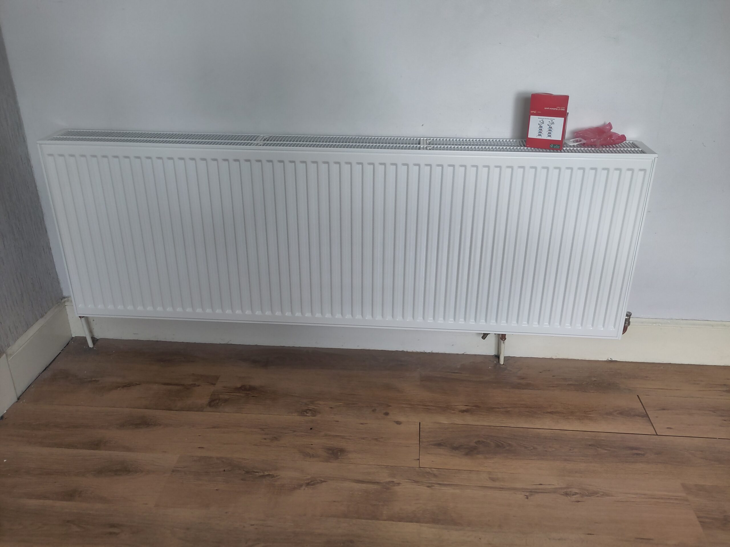 Most radiators were upgraded to larger radiators to allow a low flow temperature, and therefore more efficient system. Two of the radiators that weren’t upgraded were borderline needing upgraded to a larger size, however were difficult to do so due to the position and space available. We may come back and change them in the future, but thought we’d see how we get on first. With one of them, insulating the flat roof above should help (still to do), and would probably be the priority, which should reduce the heat loss and therefore heat requirements in that room. It’s also got the washing machine and tumble dryer, so when it’s cold there are other heat sources likely on too, reducing some of the need for a larger radiator.