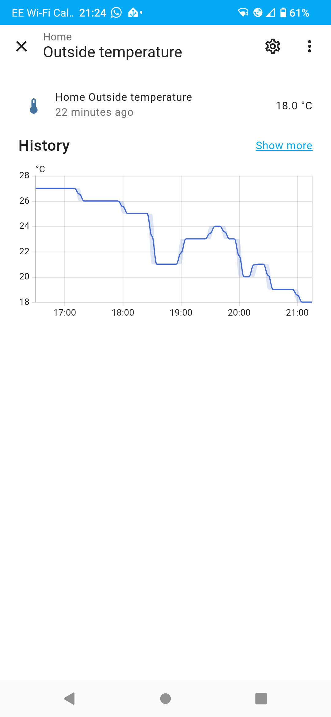 I found the pure weather compensation and dumb thermostat hasn’t worked so well, as it’s hard to find an exactly optimum heating curve, for example when it’s wet and windy I found a slightly higher flow rate was needed. I also got annoyed with the hot water occasionally heating up during the Octopus Agile peak time, so have setup Havenwise, which uses the energy tariff and weather to optimise the heating. This has produced a much more stable temperature, as it’s able to lower the flow temperature when approaching the set temperature, and raise it for example when the back door has been left open and let the cold air in, thus getting back to temperature much quicker compared to pure weather compensation. It reduces some of the cycling I seen in some weather conditions if I didn’t have the weather compensation right for that wind and rain condition. Having a cap of 45˚C flow temperature in the Havenwise system has really helped to avoid too high a temperature, and massively overshooting the target temperature. The design flow temperature is 45˚C at -5.6˚C.